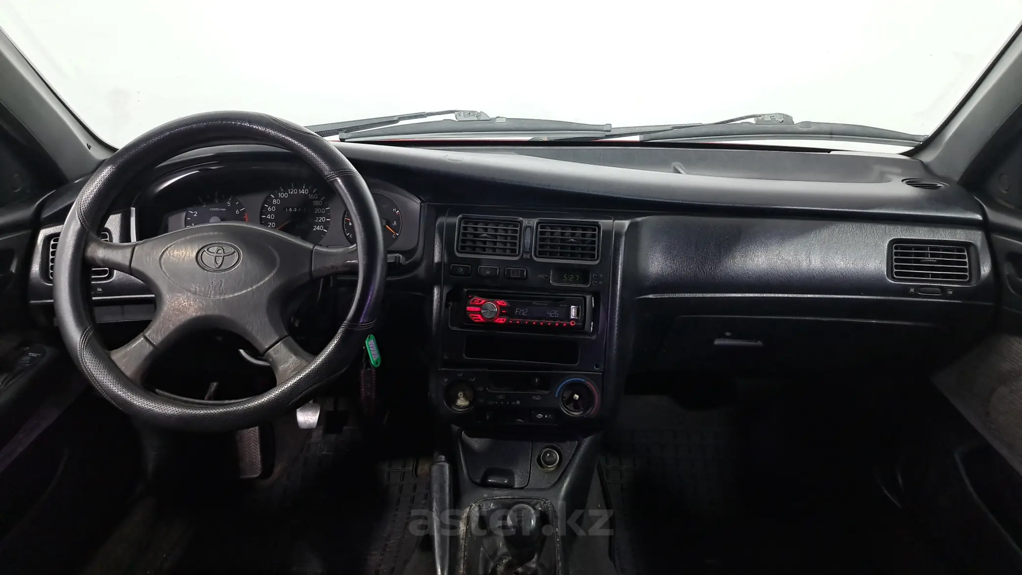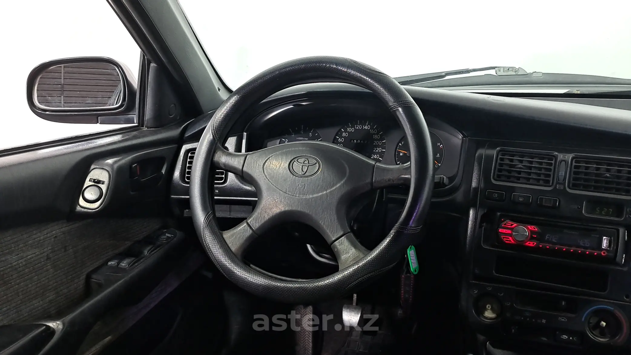 Toyota Carina E 1994 года представляет собой элегантный и сдержанный седан классического класса «седан» с умеренными размерами, идеально подходящими для городской и дорожной езды. Передняя часть отличается аккуратной решеткой радиатора с вертикальными линиями и логотипом Toyota. Фары — длинные, немного заостренные по краям, раскрывают выразительный и спокойный взгляд. Нижний бампер выполнен просто, но сдержанно, с небольшими воздухозаборниками и поворотниками. Внутренний интерьер элегантен и строг, характерен для 90-х годов. Панель приборов — простая, функциональная с четкими шкалами. Инструменты расположены удобно, вся информация — под рукой водителя.