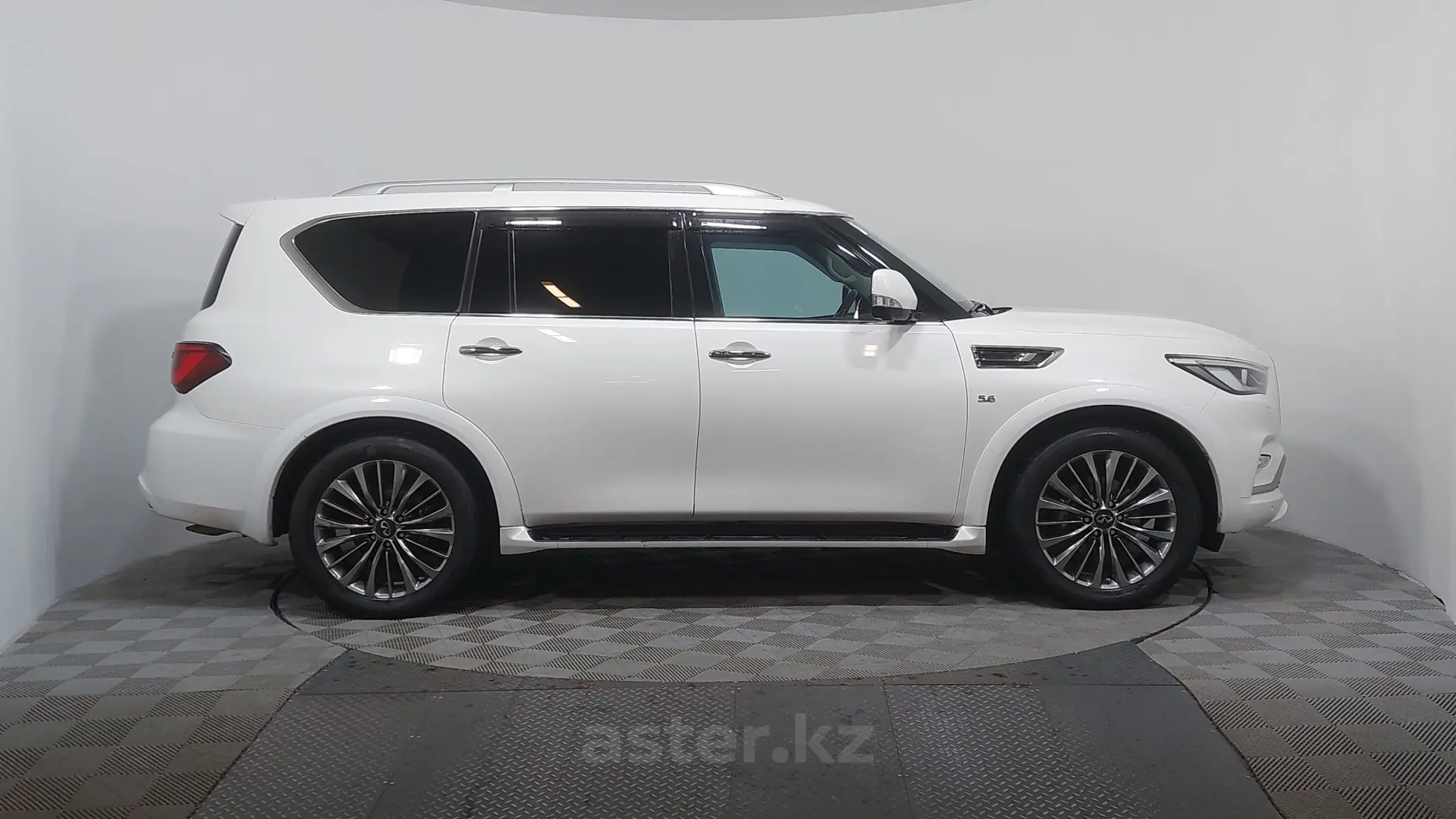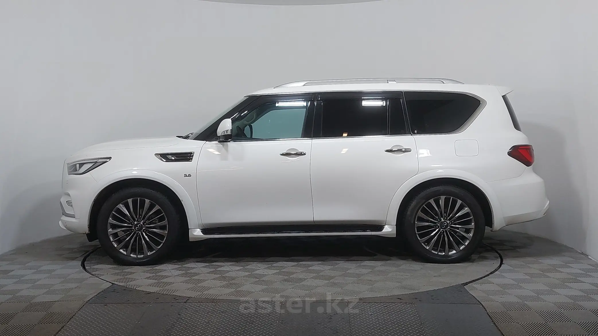 Infiniti QX80 2019 года. Роскошный и мощный внедорожник в отличном состоянии. Цвет — белый, выглядит солидно и презентабельно. Двигатель 5.5 бензин работает уверенно, автомат переключается плавно. Полный привод обеспечивает отличную проходимость и стабильность на любых дорогах. Салон — тёмная кожа, просторный и ухоженный. Комфортный и надёжный внедорожник для города и дальних поездок.