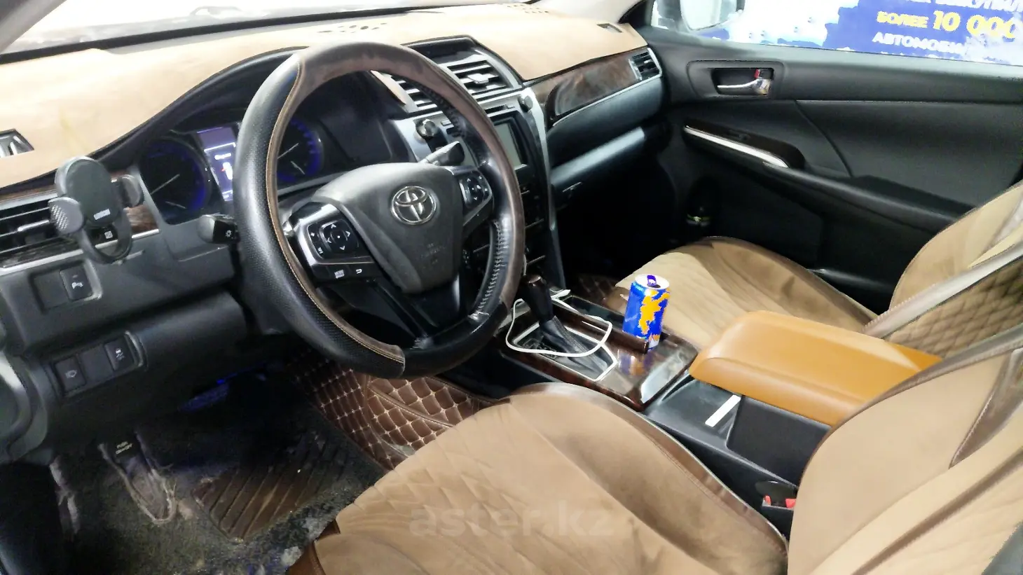 Toyota Camry 2017 — комфортный седан в белом цвете, который сразу производит впечатление. Элегантный экстерьер гармонично сочетается с салоном на рыжей кожe — тёплом, уютном и по-настоящему статусном. В такой машине приятно находиться и за рулём, и на пассажирском месте.Camry создана для комфорта: все удобства для повседневной эксплуатации продуманы до мелочей. Мягкий ход, уверенное поведение на дороге и тишина в салоне превращают каждую поездку в удовольствие — будь то городские маршруты или дальние поездки.