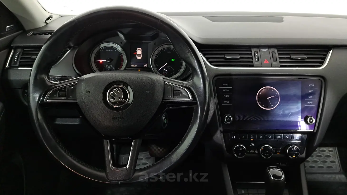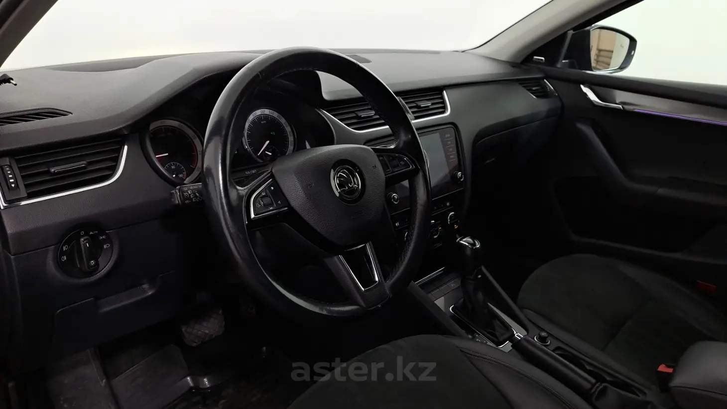 Skoda Octavia 2018 года — практичный и надёжный лифтбэк, сочетающий вместительность, комфорт и отличные ездовые качества. Чёрный цвет кузова подчёркивает строгий и солидный внешний вид автомобиля. Под капотом — бензиновый двигатель объёмом 1.6 л, обеспечивающий уверенную динамику и экономичную эксплуатацию как в городе, так и на трассе. Автоматическая коробка передач делает управление комфортным и плавным, а передний привод гарантирует стабильное и предсказуемое поведение на дороге. Автомобиль оснащён левым рулём. Салон с отделкой из тёмной кожи создаёт премиальное ощущение и отличается практичностью. Просторные сиденья и продуманная эргономика обеспечивают высокий уровень комфорта для водителя и пассажиров.