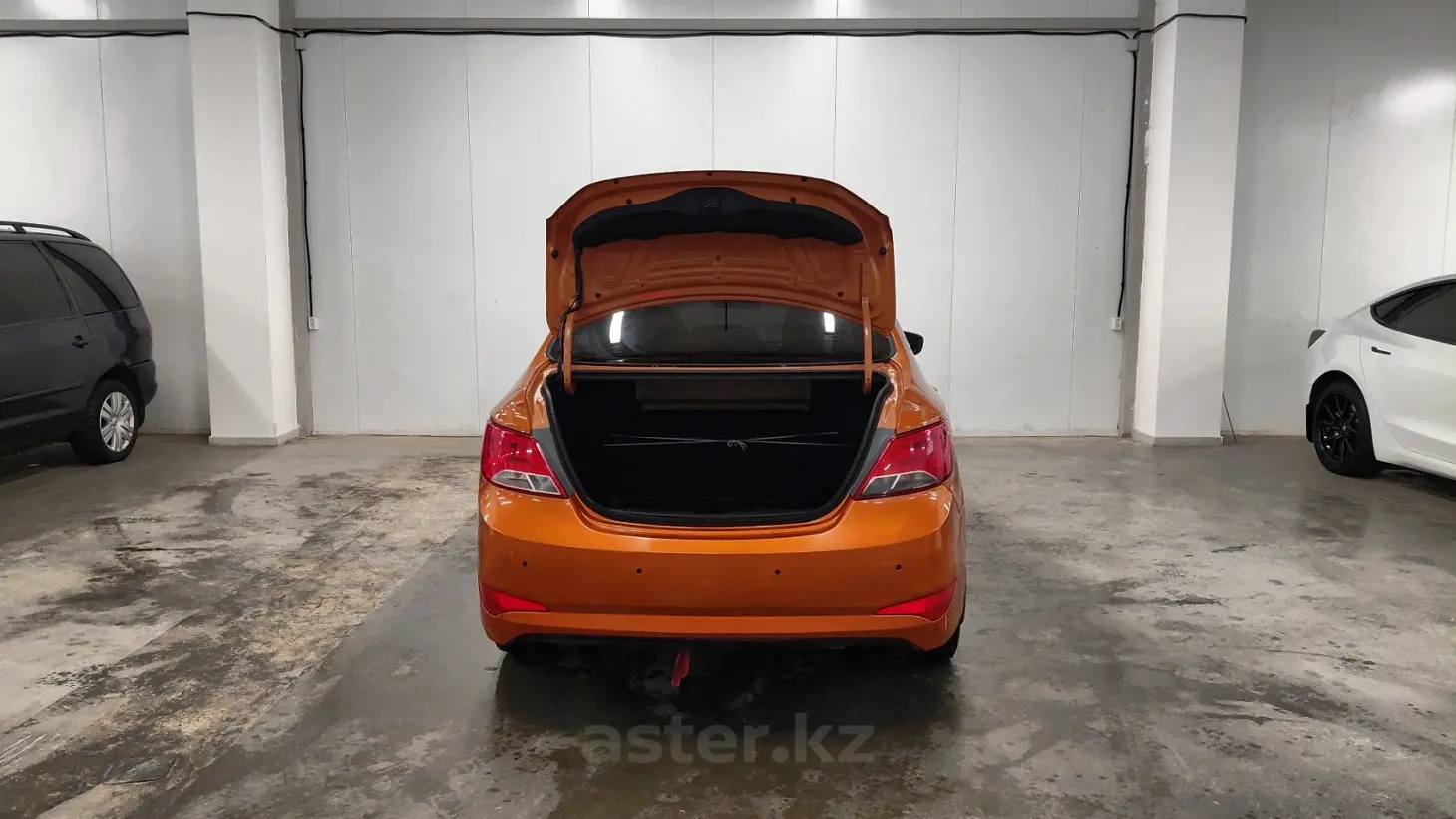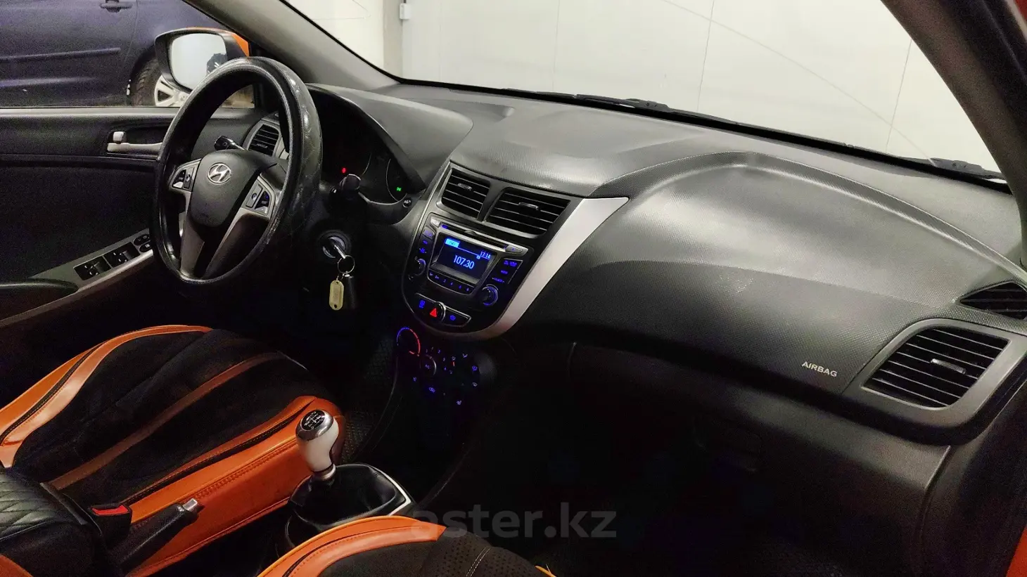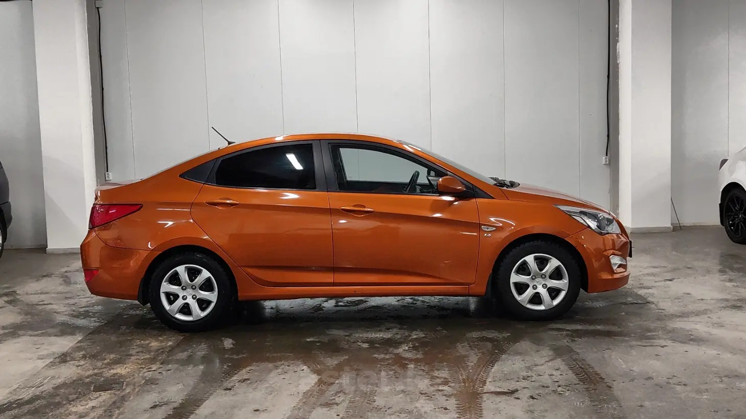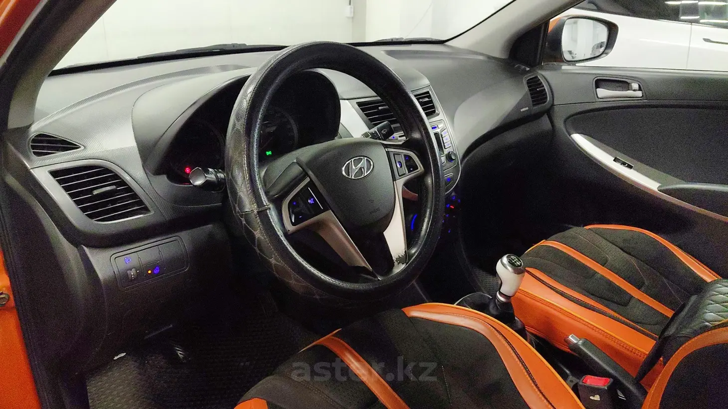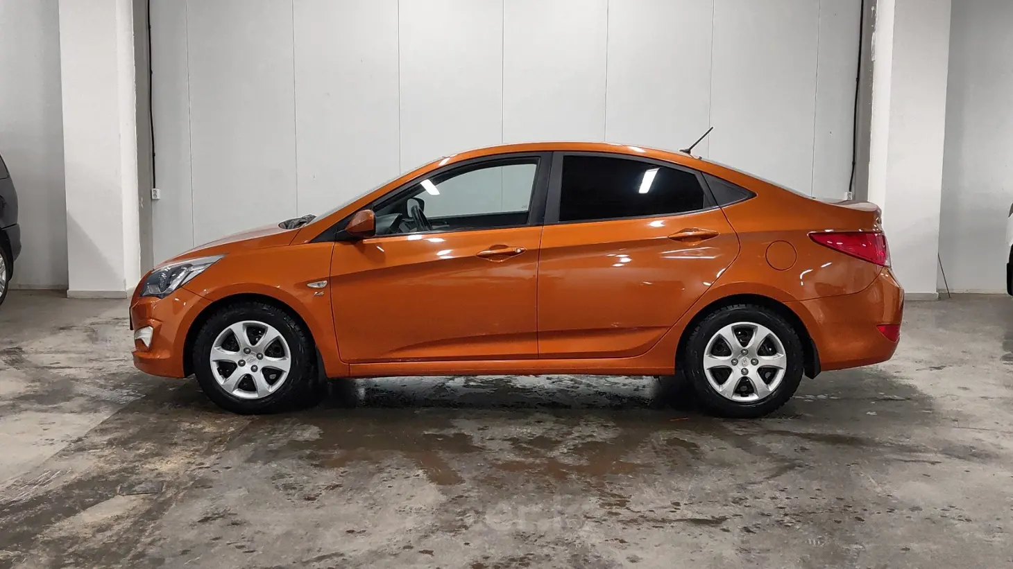 Hyundai Solaris 2014 года — компактный и экономичный седан, отлично подходящий для городских поездок и повседневной эксплуатации. Оранжевый цвет кузова придаёт автомобилю яркий и выразительный характер, выделяя его в городском потоке. Бензиновый двигатель объёмом 1.6 литра (1591 см³) обеспечивает хорошую динамику и надёжную работу. Механическая коробка передач позволяет лучше контролировать автомобиль и делает управление более отзывчивым. Передний привод гарантирует устойчивость и предсказуемость поведения на дороге. Тёмный салон выполнен в практичном стиле и создаёт комфортную атмосферу для водителя и пассажиров.