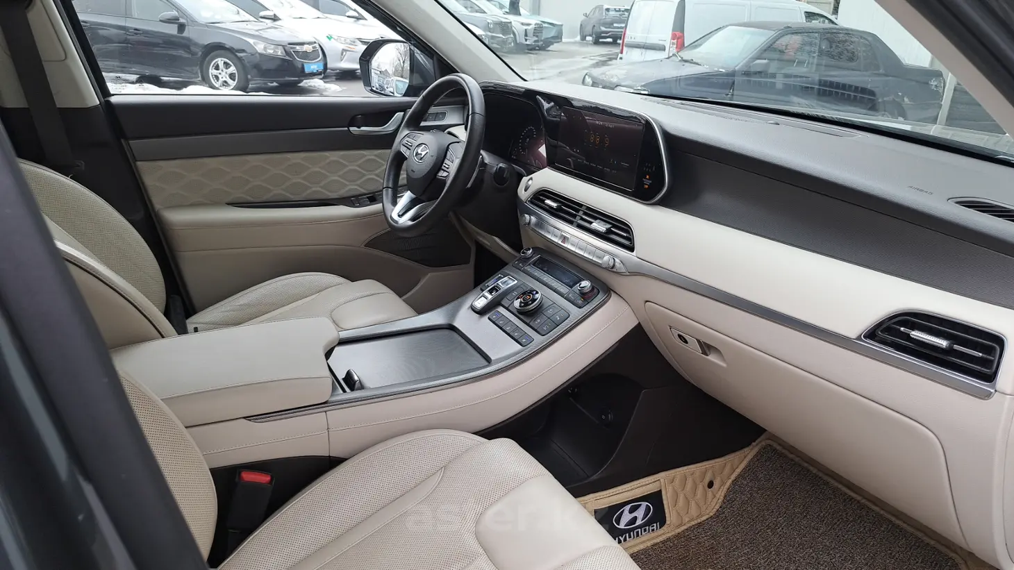 Hyundai Palisade 2021 года — Полностью в родном окрасе вплоть до бамперов, комплектация самая полная calligraphy , просторный и технологичный 7-местный кроссовер, сочетающий мощный внешний вид, высокий уровень комфорта и современные опции. Автомобиль выполнен в элегантном сером цвете, который подчёркивает его статус и внушительные формы. Салон отделан светлой кожей, создавая атмосферу премиальности и уюта. Для максимального комфорта предусмотрены подогрев и вентиляция (обдув) сидений, что обеспечивает удобство в любое время года. Круиз-контроль делает дальние поездки более лёгкими и комфортными, позволяя поддерживать заданную скорость без лишнего напряжения. Под капотом установлен бензиновый двигатель объёмом 3.8 литра , обеспечивающий отличную динамику и уверенную тягу даже при полной загрузке. Автоматическая коробка передач гарантирует плавное переключение, а полный привод добавляет устойчивости и безопасности на разных типах дорожного покрытия