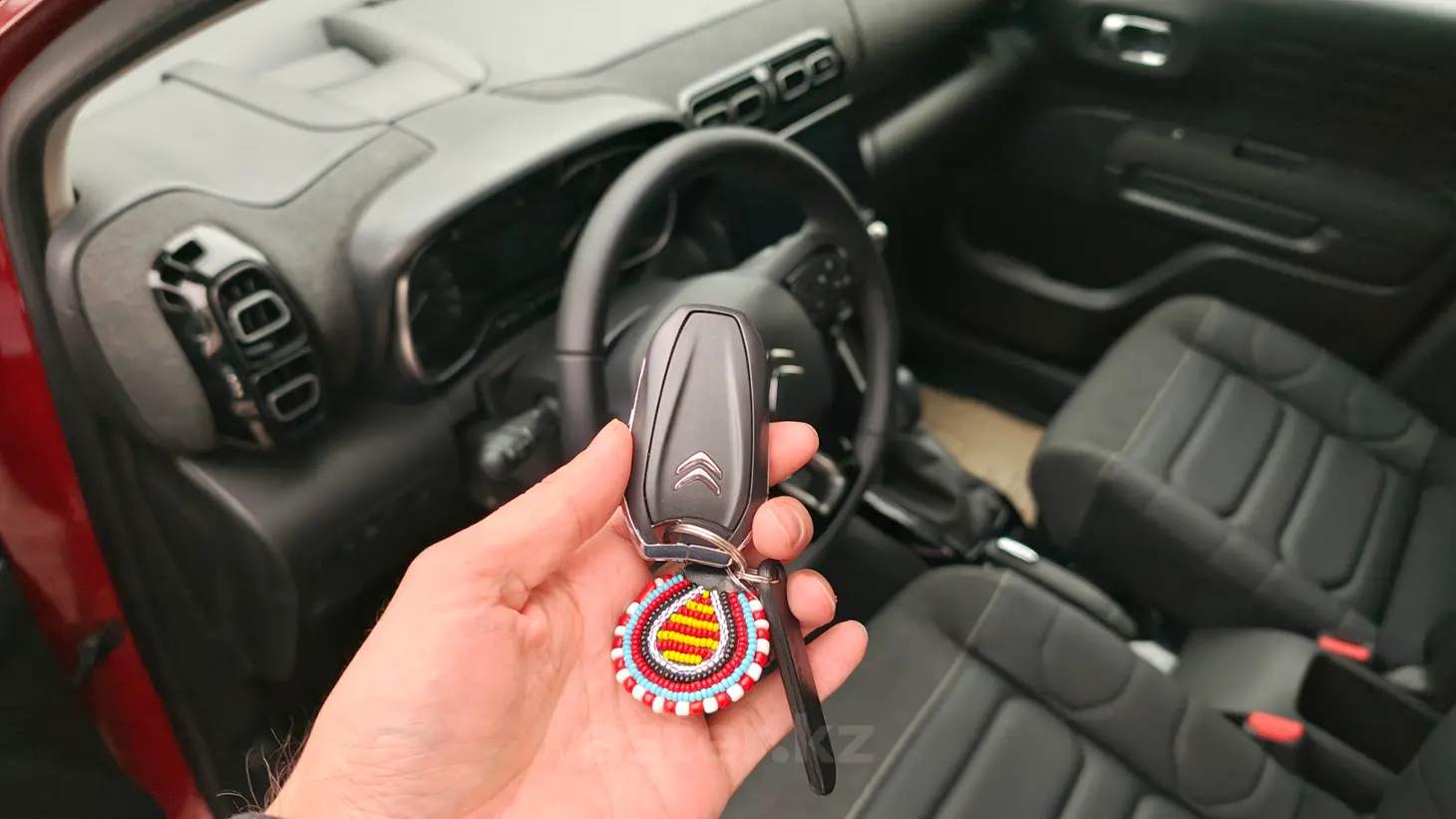 Красивый CITROEN с красной черной крышей во всём KZ! Складывается переднее сиденье и становится ровный пол на 2, 2 метра. Можно спать в полный рост машине при путешествии хорошо отдохнув. Расход — всего 4.5 л на 100 км по трассе. Сиденья Citroën Advanced Comfort — это фантастика! Мягкая подвеска. Комфорт — летающего ковра!
