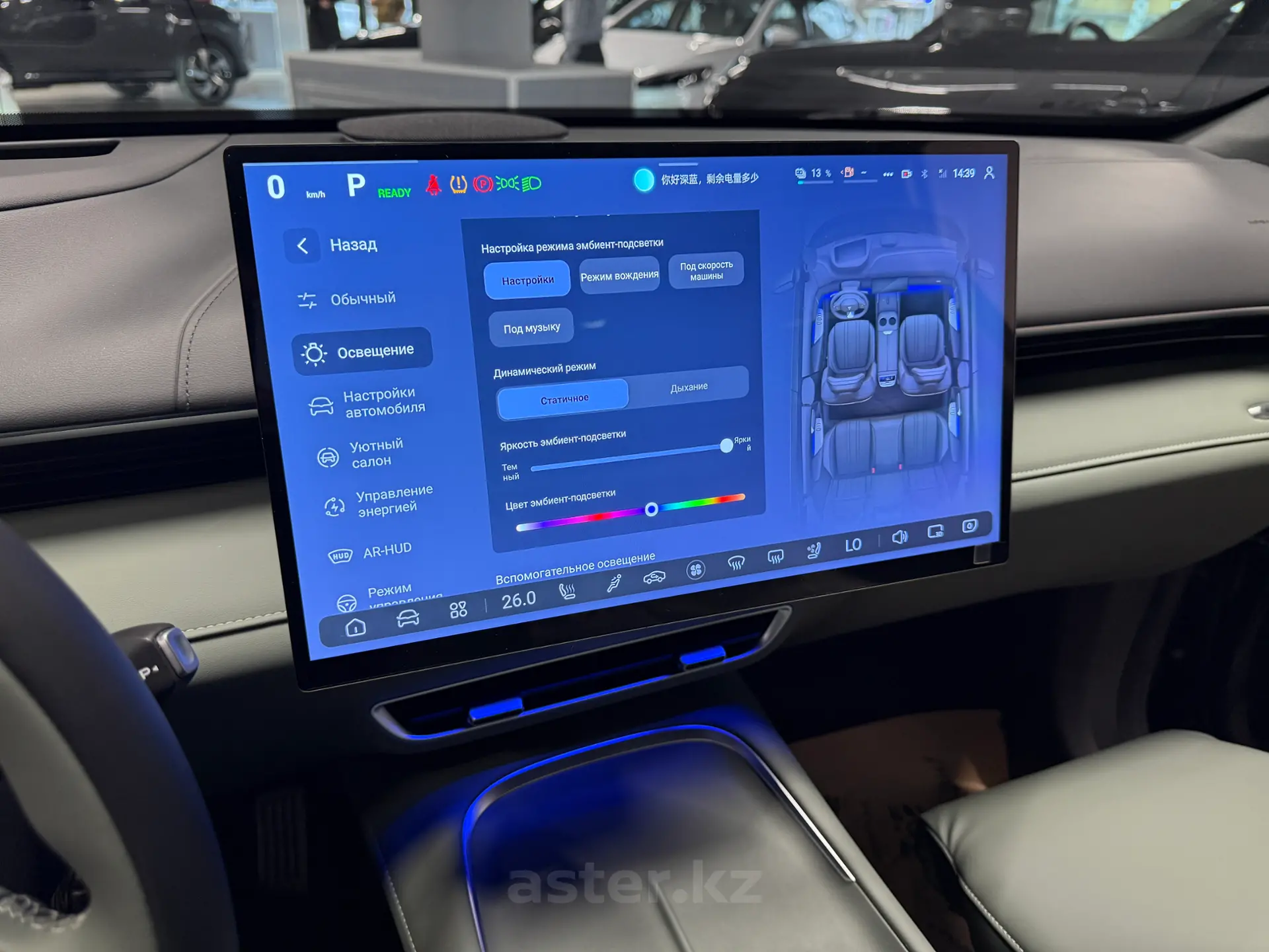 • Атмосферная подсветка (упоминается 64 цвета) и мощная аудиосистема (14 динамиков по данным некоторых источников).