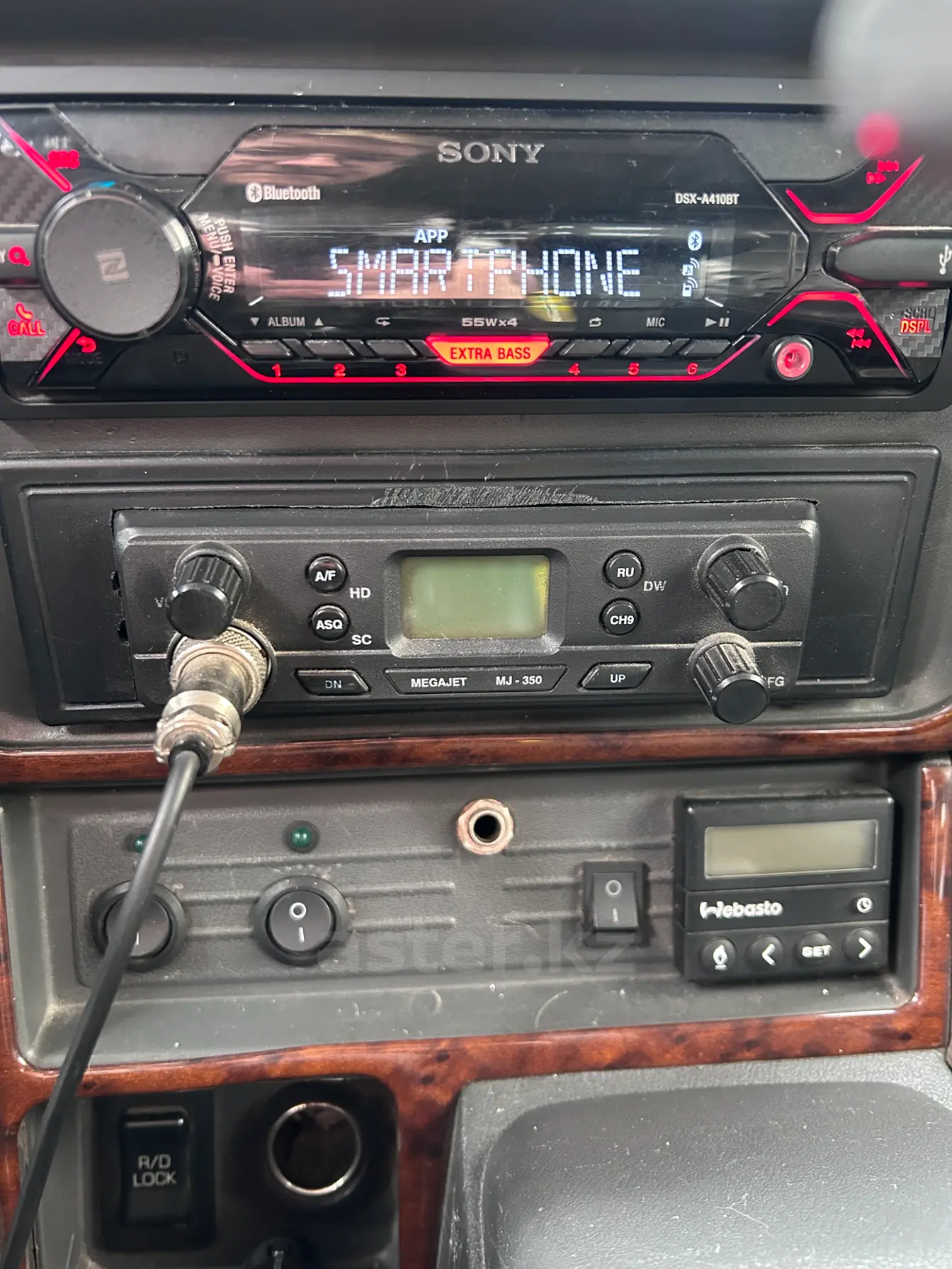 Подогрев бака. Кондиционер работает — нужно заправить. Родная автономка снята (подтекала солярка). Штатная музыка. Рация. Допсвет, багажник, лестница, фаркоп, шноркель — всё вписано в техпаспорт. Полная шумоизоляция. Круиз-контроль работает. Подогрев сидений есть (на водительском перегорела нить). Люк не работает — закисли полозья. Требуется замена заднего левого стеклоподъёмника.
