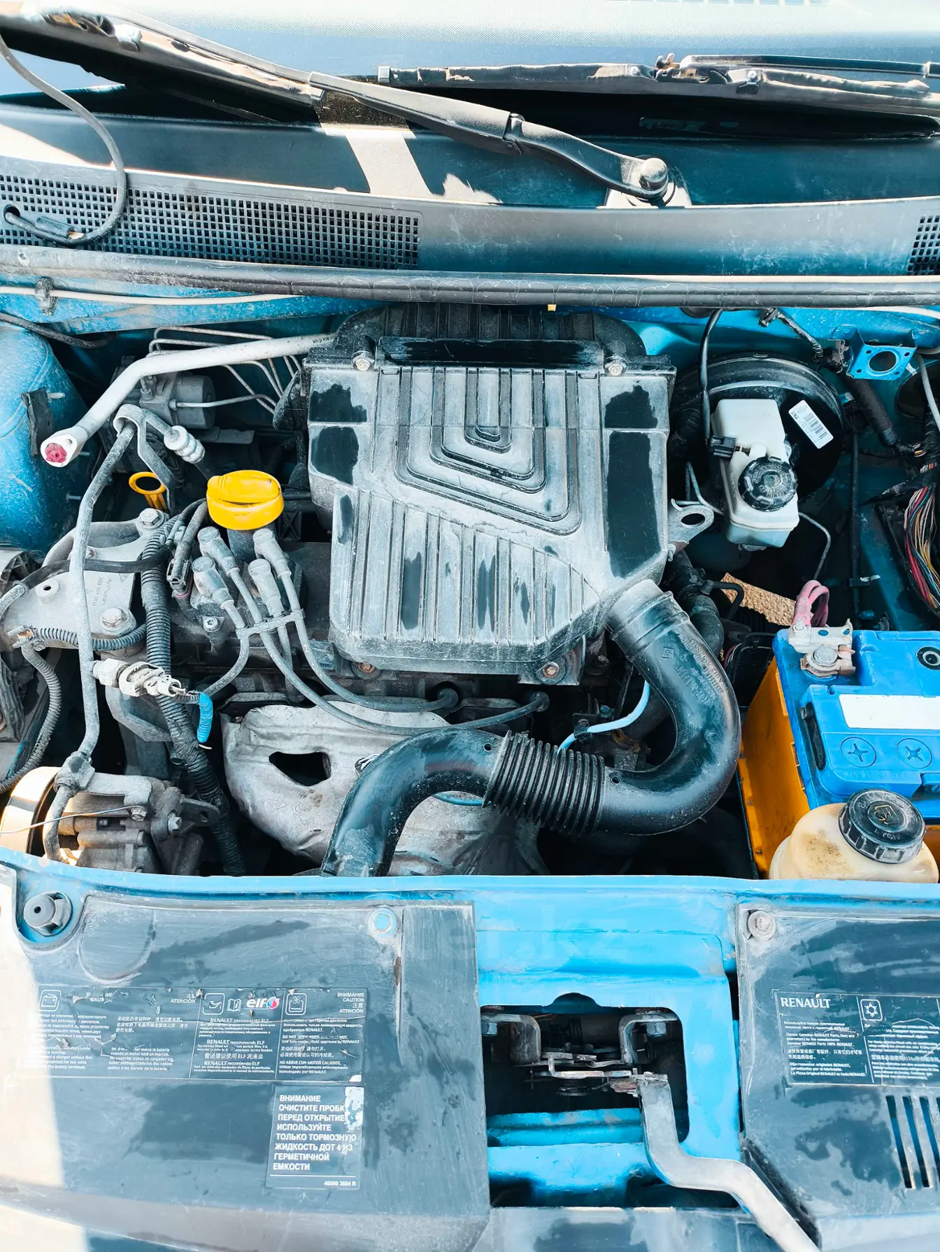 Автомобиль во вторичном окрасе, есть места со шпатлёвкой. Покраска на 4 из 5. Передний бампер требует ремонта или замены, лопнула шпатлёвка на правом заднем крыле, на правом пороге рыжики. Днище ровное, без коррозии и дыр, проемы, лонжероны, брызговики целые, без следов рихтовки, сварки, вытяжки. Поврежден шлейф в руле, не подключена подушка безопасности и круиз контроль. Нет сигнализации, есть комплект летних шин. Лобовое стекло целое. Ошибок в ЭБУ нет. Ходовая часть отремонтирована, клапаны отрегулированы, дроссельный узел промыт, свечи зажигания новые фирменные Renault 2-контактные, расхода масла нет.